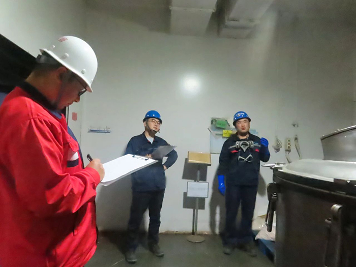 本次大比武設(shè)置了兩個關(guān)鍵環(huán)節(jié):萃取分液與離心機操作,以及風(fēng)險點辨識與應(yīng)急處置。在萃取分液與離心機操作環(huán)節(jié)中,員工們嚴格遵循操作規(guī)程,展現(xiàn)了精湛的技術(shù)和嚴謹?shù)膽B(tài)度。而在風(fēng)險點辨識及應(yīng)急處置環(huán)節(jié),員工們不僅要辨別全流程操作的安全風(fēng)險,還要就如何迅速有效地進行應(yīng)急處置進行闡述。裁判員的隨機提問考驗了參賽者的應(yīng)變能力和安全知識儲備,面對關(guān)于離心機操作中可能出現(xiàn)的異常工況等,參賽員工們應(yīng)答自如,顯示出扎實的安全操作基礎(chǔ)。